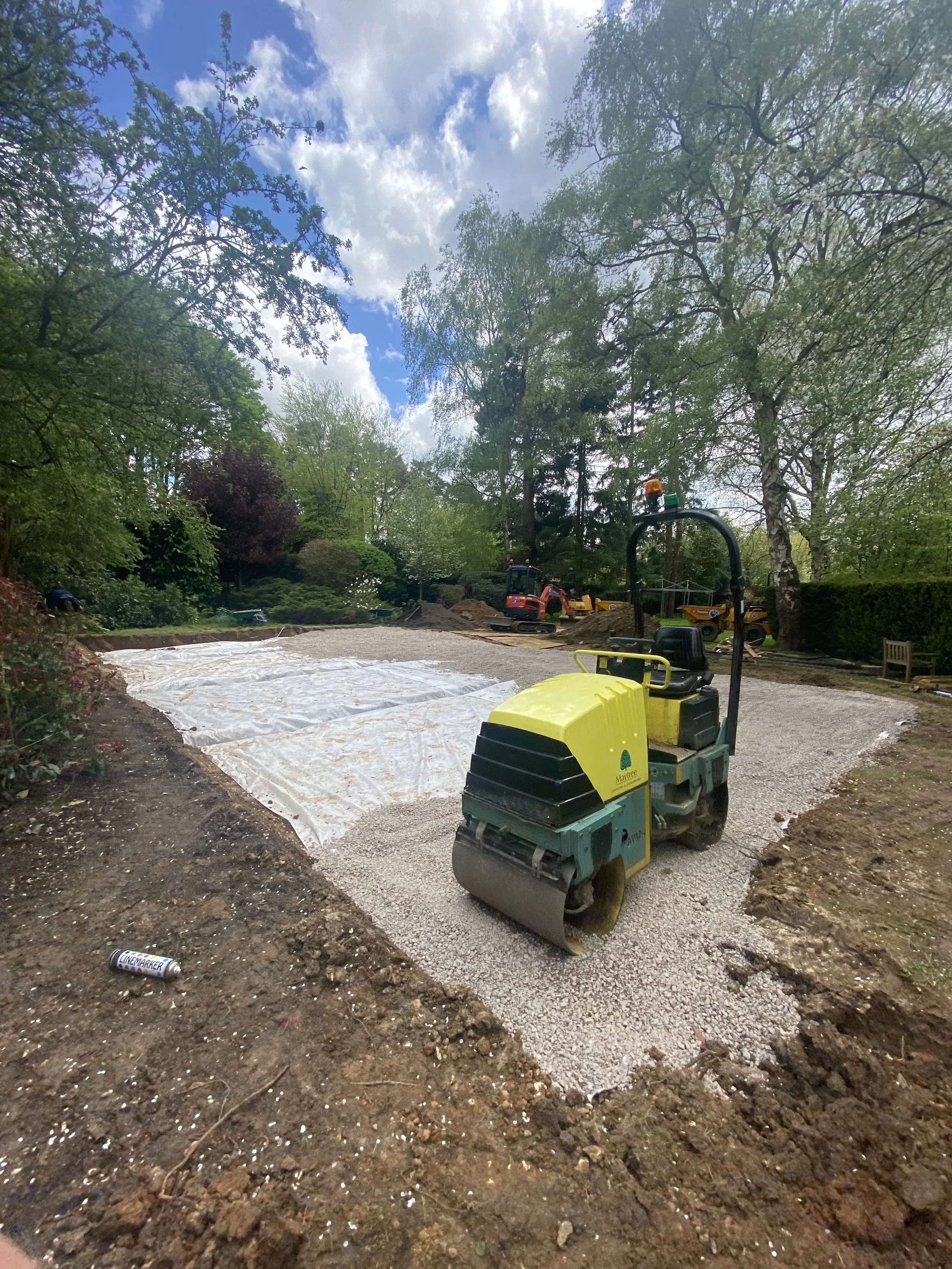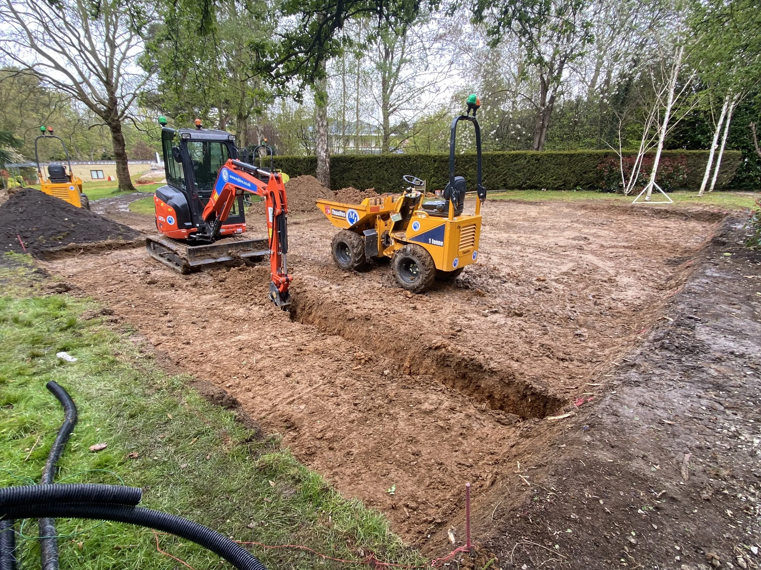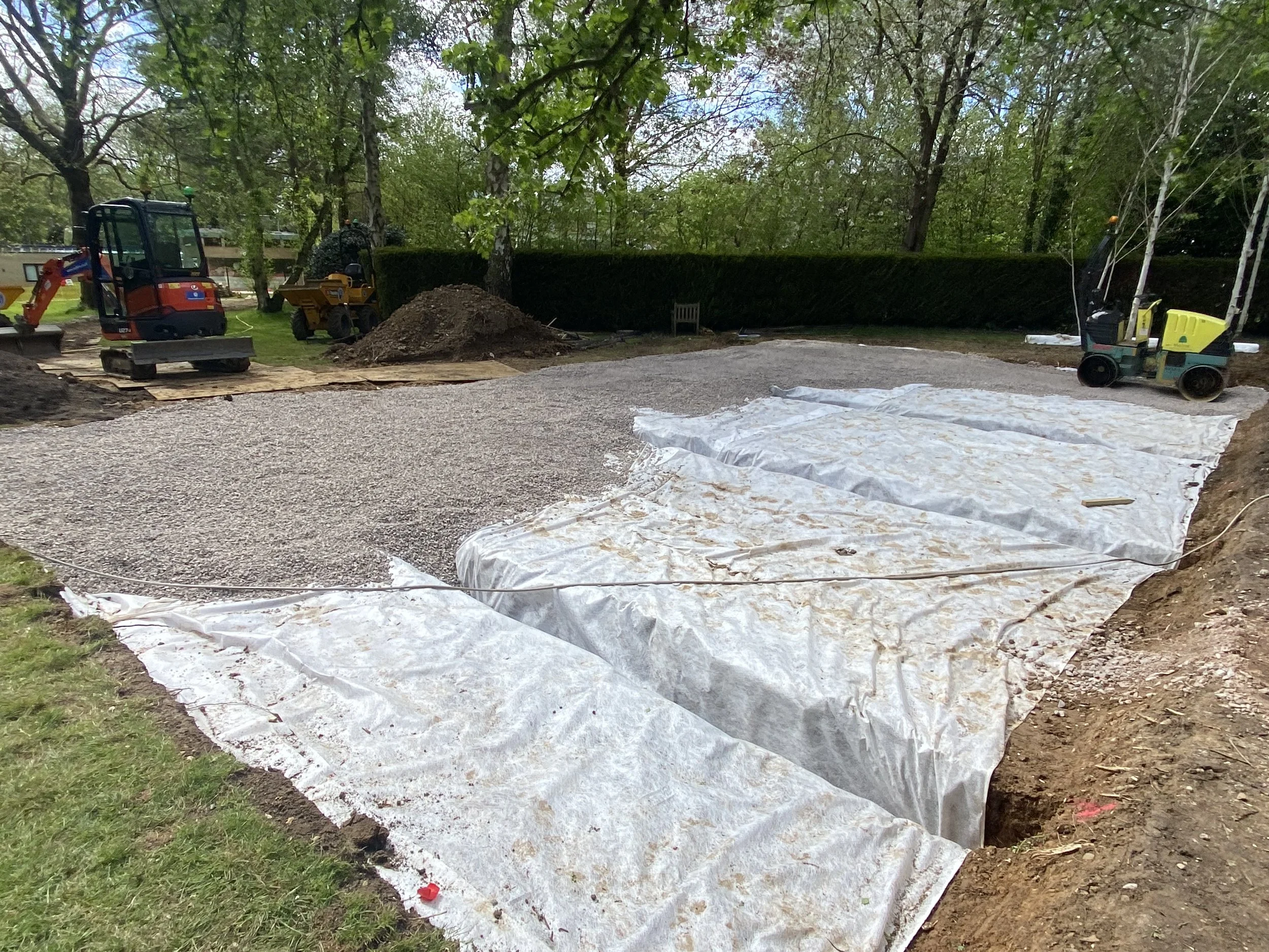 Installation of raised hut tub terrace and surrounding paved areas.