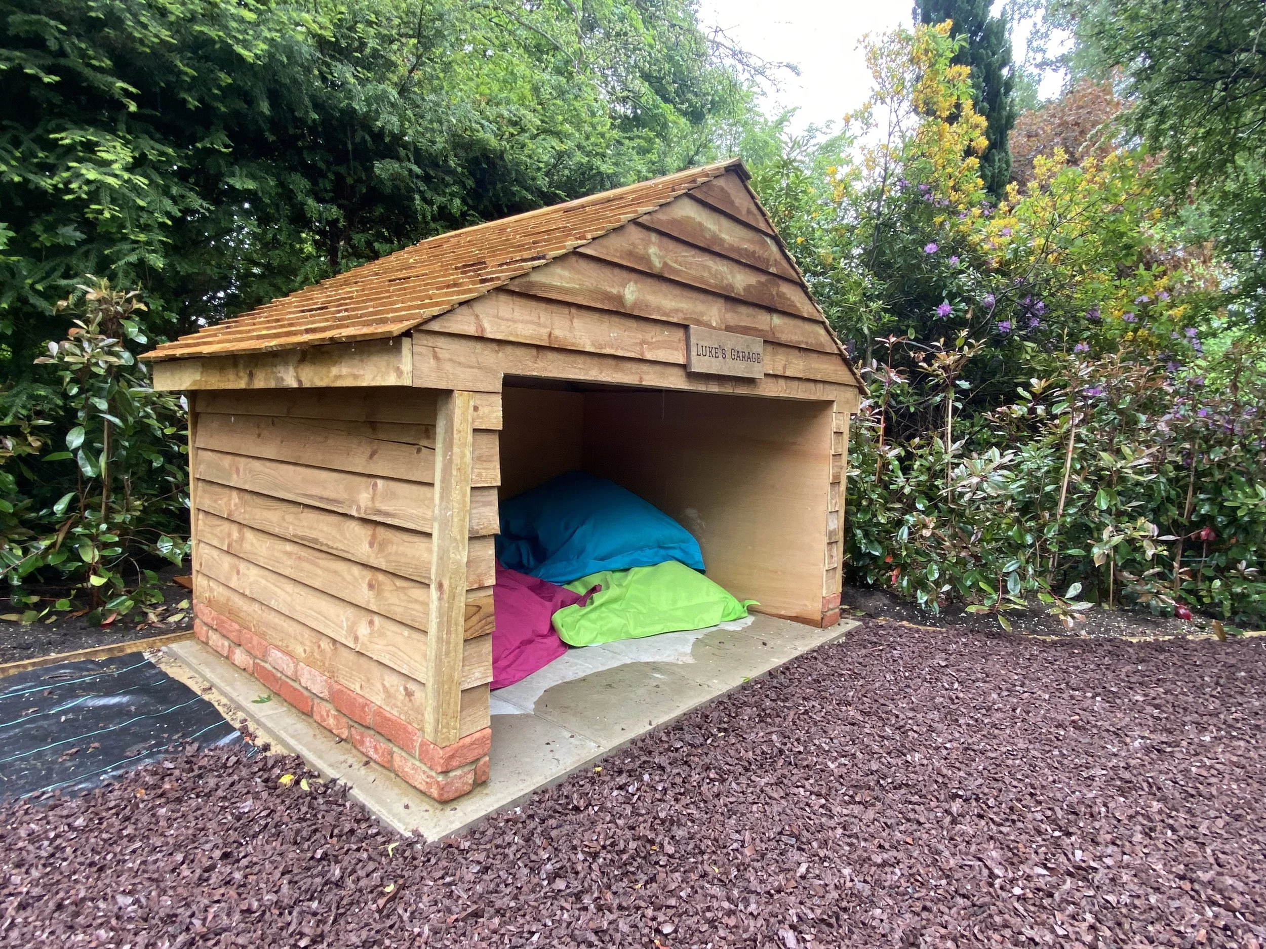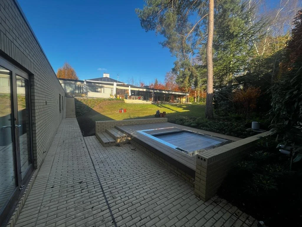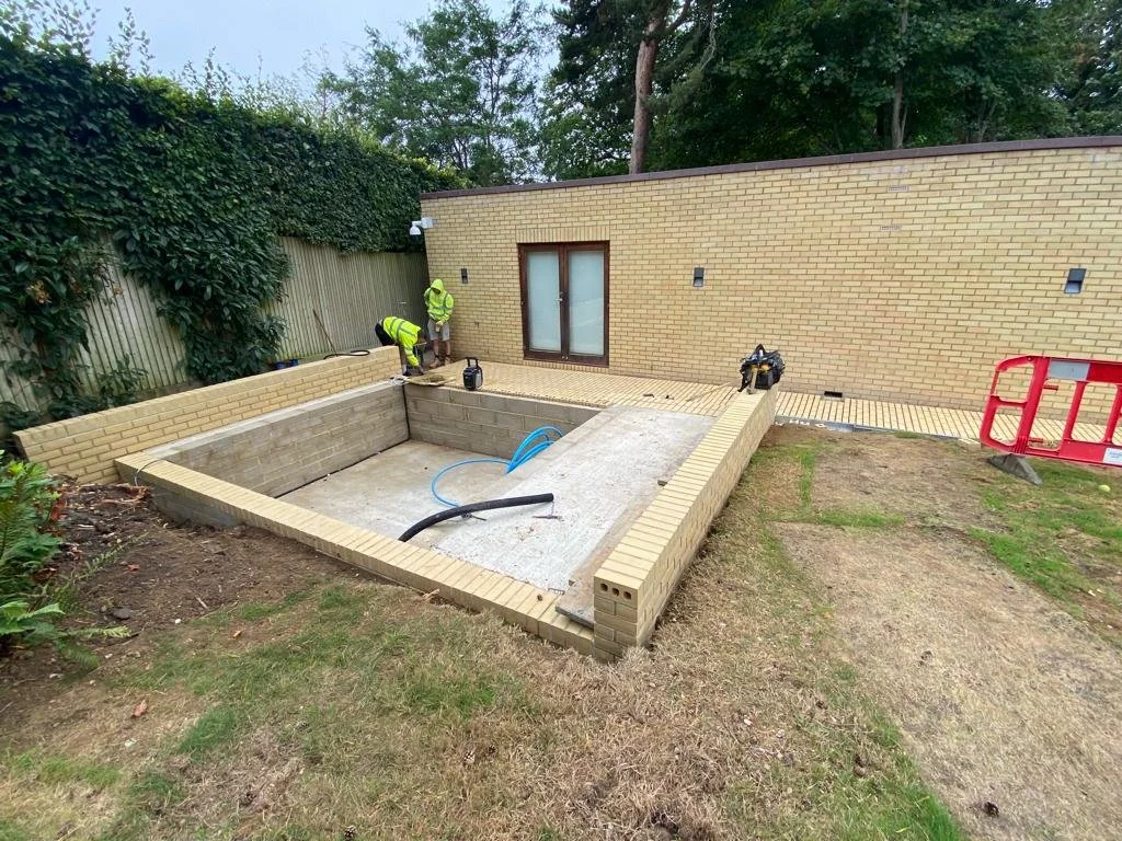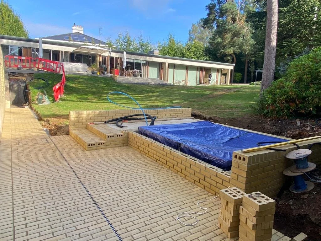 Installation of raised hut tub terrace and surrounding paved areas.